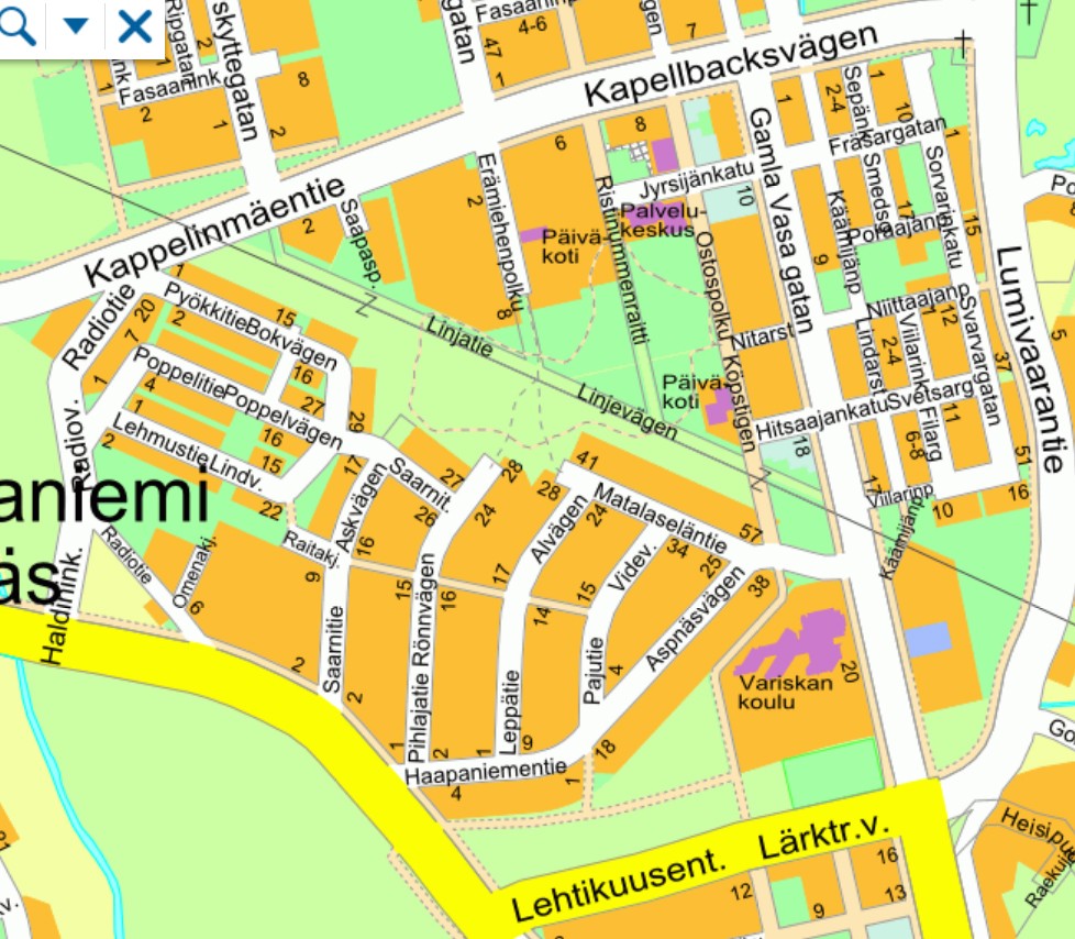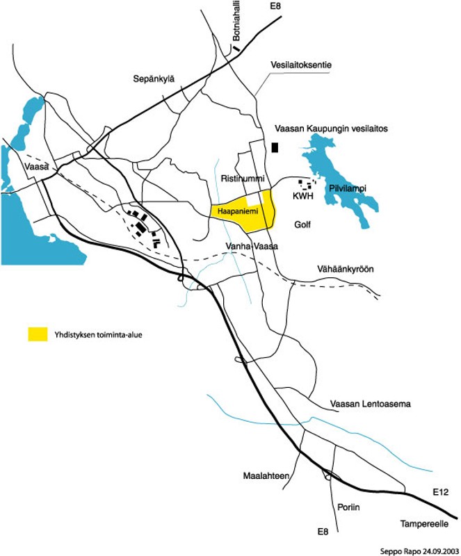 Jäseneksi liittymis alueen tarkkarajaus: Pohjoisessa Kappelinmäentie, idässä Lumivaarantie, etelässä Lehtikuusentie ja lännessä Huutoniemelle menevään tiehen.